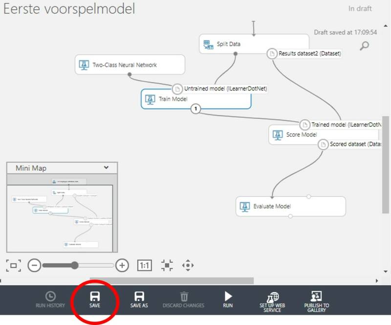 - Evaluate Model (klik in de linker kolom op ''Machine Learning'' en vervolgens op ''Evaluate'')
